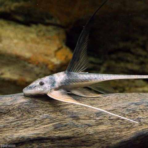 | 種類詳細 | ペルー原産のロリカリアです。各ヒレが伸長する姿からロリカリアの中でも人気の種で、いくつか似たような種が他にも知られます。背ビレ、尾ビレ、胸ビレのフィラメントは非常に長く伸び、優雅な姿は他の地味なロリカリアとは大きく異なります。飼育はやや難しく、導入直後などは水質に神経質な面を見せます。強い水流と豊富な溶存酸素、十分なろ過が飼育のポイントと言えます。 |