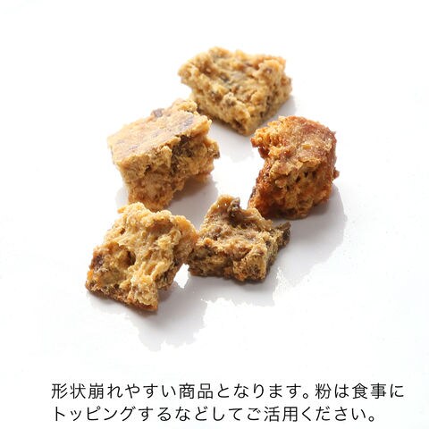 ※崩れやすい商品となります。粉は食事にトッピングするなどしてご活用ください。 ※天然素材なので、形・色合いに多少のバラつきがあります。 ※お口が大きめのワンちゃんや、噛む癖が無いワンちゃんは、丸飲みしてしまう可能性があります。本品を与える際は、喉に詰まらせないよう様子を見ながら与えてください。 ※本品は保存料を使用しておりません。消費期限内でも保管状況によっては、カビが発生する場合がございます。開封後はお早目にお与えください。 |