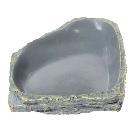 | 特長 | ●爬虫類や両生類に適した掃除しやすいエサ皿兼水飲み皿です。 ●ケージの角に設置しやすいようになっています。 ●岩をイメージして作られているので様々なレイアウトにマッチします。 ●ひっくり返してしまわないように程よい重量があります。 |