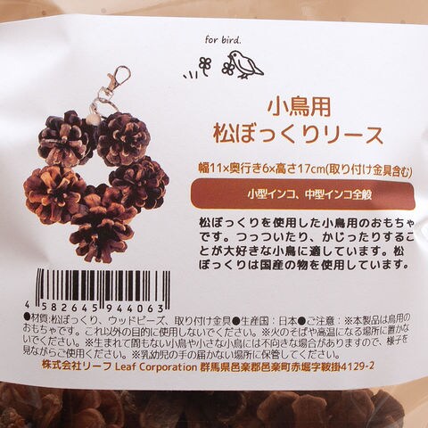 小鳥用 松ぼっくりリース 4582645944063 リーフコーポレーション リーフコーポ リーフ LEAF Corp necoyama工房 鳥 おもちゃ 玩具 バードトイ 国産 セキセイインコ マメルリハ セキセイ オカメインコ コザクラインコ 中型インコ 小型インコ ハンドメイド 鳥 天然素材 木の実 松ぼっくり hwlist 20250105 y25m01 kszk hwhmlist 20250113 pus2506leaf04 leafpinecone