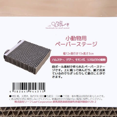 小動物用 ペーパーステージ 4582645944315 リーフコーポレーション リーフコーポ リーフ LEAF Corp necoyama工房 ケージ おもちゃ ステージ 紙 段ボール ハムスター デグー モモンガ フクロモモンガ リス シマリス ジャンガリアンハムスター ゴールデンハムスター キンクマ ハンドメイド hwlist 20250204 y25m02 kszk hwhmlist y25m02newani pus2504leaf03 daikukakou pus2508leaf03
