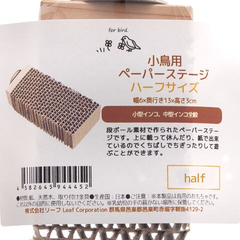 小鳥用 ペーパーステージ ハーフサイズ 4582645944452 リーフコーポレーション リーフコーポ リーフ LEAF Corp necoyama工房 鳥 ケージ バードケージ おもちゃ 止まり木 とまり木 ステージ 紙 段ボール セキセイインコ マメルリハ セキセイ 小型インコ オカメインコ コザクラインコ サザナミインコ ハンドメイド hwlist 20250305 y25m03 kszk hwhmlist daikukakou pus2506leaf04