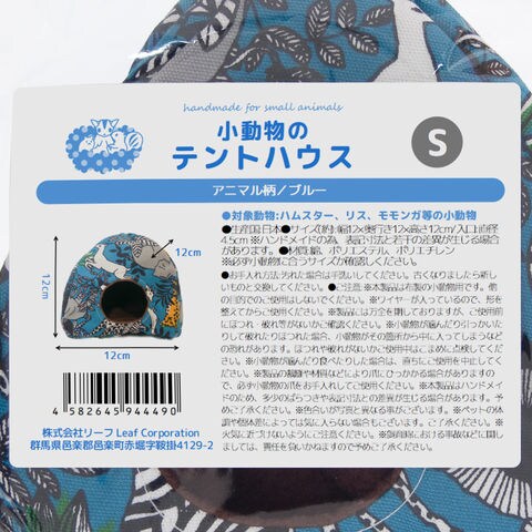 小動物用 テントハウス S アニマル柄 ブルー 4582645944490 小動物用品 ハムスター リス シマリス ハウス お家 小動物 用品 animal 布 ハンドメイド 手作り トンネル Leaf naisyoku_syukei _animal hwlist handmade necoyama工房 hwhmlist 20250310 y25m03 kszk