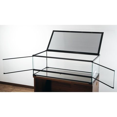 | 特長 | ●テラリウムなど、様々な用途に使用できるガラスケージです。 ●正面扉はしっかりとロックされるため、生体が脱走してしまう心配がありません。 ●トップカバーは通気性のよいメッシュスクリーンになっており、4ヶ所のロックを外すことで取り外しが可能です。 ●コードや6mmまでのチューブを通せる穴が4ヶ所あるため、ミスティングなども容易に行えます。 ●使用しないコード穴は閉じておくことができるため、生き餌などが脱走する心配もありません。 ●扉下までは水を入れることが可能なため、アクアテラリウムなどもお楽しみいただけます。 |
