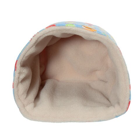 | 特長 | ●すっぽり入れて小動物が落ち着けるドーム型ハウスです。 ●かまぼこ型でしっかりした作りのため安心して休めます。 ●内側は暖かいフリース生地を使用しています。 ●中に入っているクッション材が形を維持し、入りやすくなっています。 |