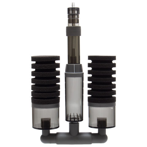 | 特徴 | ●淡水にも海水にも使用できるスポンジフィルターです。 ●エアポンプを接続するだけで使用できます。 ●通常のスポンジフィルターと異なり、エアストーンが付いているので気泡が細かくなります。 ●スポンジフィルターで物理ろ過を行い、お好みのろ材を入れていただくことで生物ろ過も行えます。 ●左右だけでなく中央にもろ材スペースを設けているので、最大3種類のろ材を使用することができます。 ●出水口は高さが調整可能なので、様々なサイズの水槽に適しています。 |
