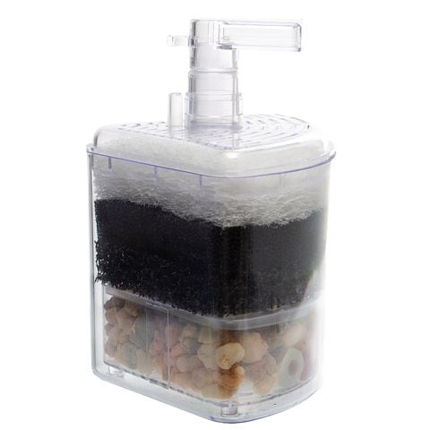 | 特長 | ●水槽の角にピッタリ設置できる投げ込み式フィルターです。 ●5種類のろ材で物理ろ過と生物ろ過を行い、クリアな水を維持します。 ●出水口は高さが調整可能で、水位の低い水槽にも適しています。 |