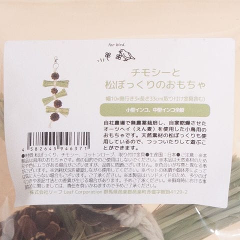 チモシーと松ぼっくりのおもちゃ セキセイインコ コザクラインコ オカメインコ 小型インコ 中型インコ 4582645946371 リーフコーポレーション リーフコーポ リーフ LEAF Corp necoyama工房 鳥 トリ おもちゃ 玩具 バードトイ 天然素材 破壊系 牧草 松ぼっくり セキセイインコ マメルリハ オカメインコ ボタンインコ コザクラインコ セキセイ 小型インコ 中型インコ hwhmlist hwlist 20250902 y25m09 kszk leafpinecone