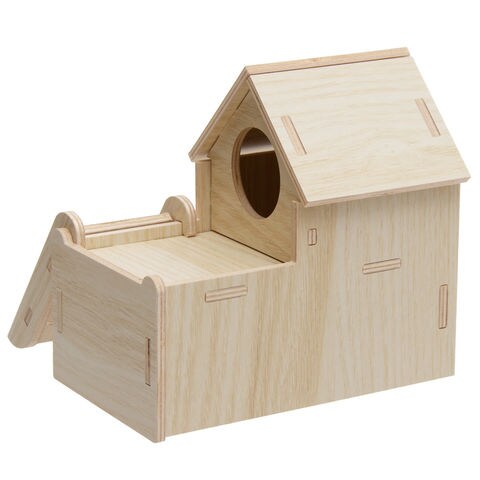 | 特長 | ●組み立て式のハムスター用ハウスです。 ●釘を一切使用しないため、安心安全です。 ●2階建てになっているため、部屋が2つあります。 ●天然木を使用しているので、かじっても安心です。 ●ボロボロになったらバラして捨てることができるのでゴミがかさばりません。 |