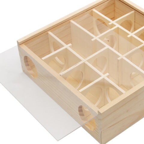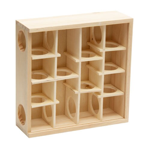| 特長 | ●上から観察できるハムスター用の迷路です。 ●天面の板と内部の板は取り外しできるので、掃除がしやすくなっています。 ●本体は天然木を使用しているので、かじっても安心です。 |