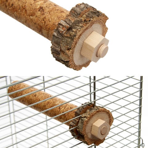 特長 ●金具を使わず、木材とコルクのみで作られたとまり木です。