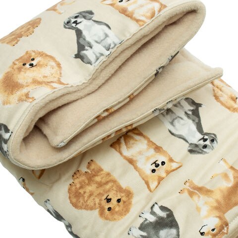 | 特長 | ●色々な犬種のわんちゃん柄がかわいい、コンパクトで持ち運びに便利なカフェマットです。 ●ドッグカフェ出かけた時に敷くマットや車の中の椅子に敷いたり、おうちでリラックスするときにも使用できます。 ●あったかいフリース生地を使用しており、中にはふわふわのマットが入っているためカフェでの時間を心地よく快適に過ごせます。 ●1/6に折って付属のポケットにしまう、畳んでゴムで留める。しまい方を選ぶことができます。 ●持ち手が付いてるためバックなどにひっかけることができます。 |
