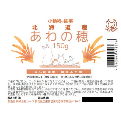 | 小動物の食事 北海道産 あわの穂 150g | |