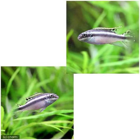 | 種類詳細 | ナイジェリア、カメルーン原産のシクリッドです。 アフリカ産のドワーフシクリッドの中でも古くから知られるポピュラーな種で、美しい色彩と繁殖の楽しさから古くから愛好されてきました。 旧学名の“ペルマト”の名称で東南アジアでブリードされた個体が流通する他、時折アフリカからのワイルド個体が輸入されます。 ブリードされた若魚ではオスメスの判別が難しいものの、成熟したオスは背ビレと尻ビレが伸張し、尾ビレもスペード状になります。 メスはやや丸みを帯びた体形を持ち、発情した個体は腹部がピンクに発色します。 オスメスともに色彩変異も多く、背ビレや尾ビレのスポットの数が多い個体やまったく見られない個体、背ビレ付け根が黒く染まる個体、オスでも腹部や顔にメスのような赤い発色を見せる個体が見られます。 飼育は容易で、ペアで状態良く飼育していれば繁殖も容易です。ペアで仲良く子育てを行なうため、繁殖はペア任せで問題ありません。 流木などで隠れ家を十分に用意してあげるとよいでしょう。 |