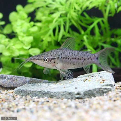 | 種類詳細 | ペルー原産のナマズの仲間です。 コリドラスとは比較的近縁な種で、カリクティス科(Callichthyidae)に分類されます。 コリドラスに比べナマズらしい顔つきと、長いヒゲが特徴です。 サイズはやや大きくなりますが、生態にもコリドラスと似た点が見られ、性質は温和で飼育も容易です。 中型魚以上の魚との混泳が可能なため大型魚などの残餌の掃除役として人気の種です。 |