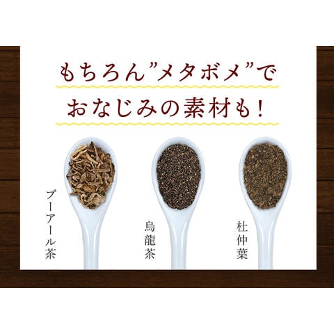 | 原材料 | 黒豆[大豆](アメリカ・国産)、プーアール茶・ウーロン茶・杜仲葉(中国)、プーアール茶エキス(国産) ■アレルギー物質/大豆 |