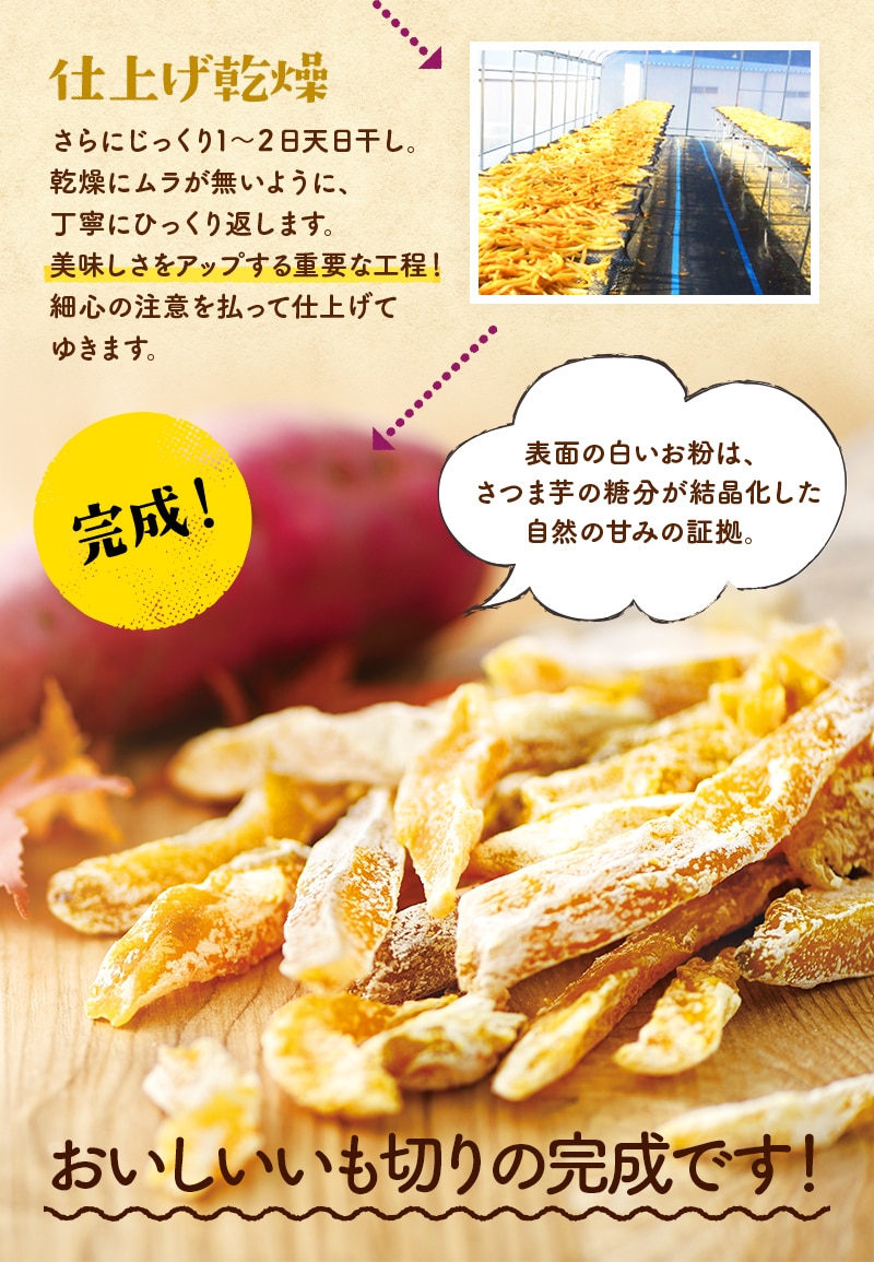| 保存方法 | 高温多湿を避け冷暗所にて保存 ※自然のものですので、表面の白い粉(お芋本来の糖分が結晶化したもの)の付き方は写真と異なる場合がございます。 ※商品到着後は冷蔵庫で保存し、開封後はお早めにお召し上がりください。 |
