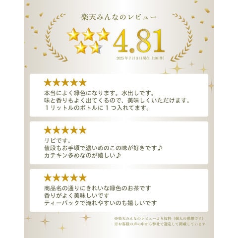 | 全原材料 | 緑茶・抹茶(国産)、チャ抽出物 |