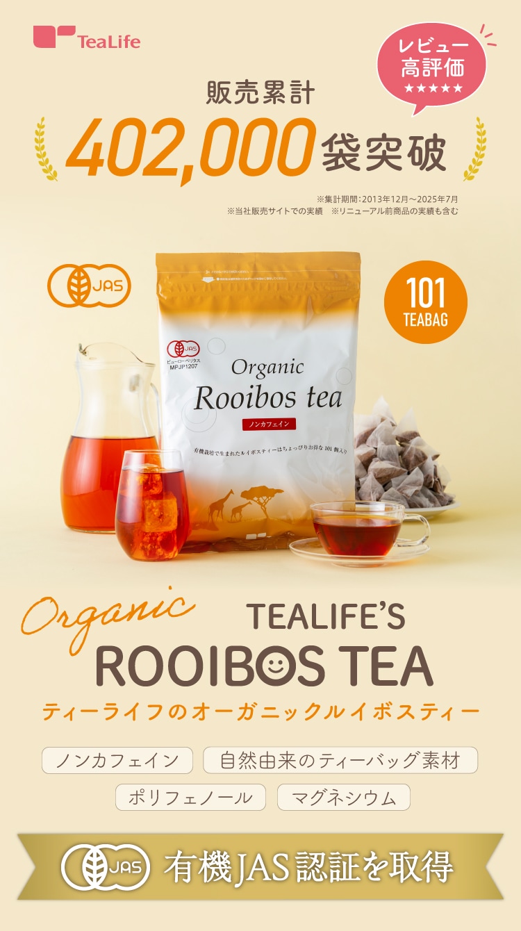 【まとめ買い★1%お得】オーガニックルイボスティー 101個入×2袋セット ( 有機JAS ルイボスティー オーガニック 有機 ノンカフェイン カフェインレス ハーブティー お茶 ティーバッグ ティーパック 送料無料 ティーライフ )