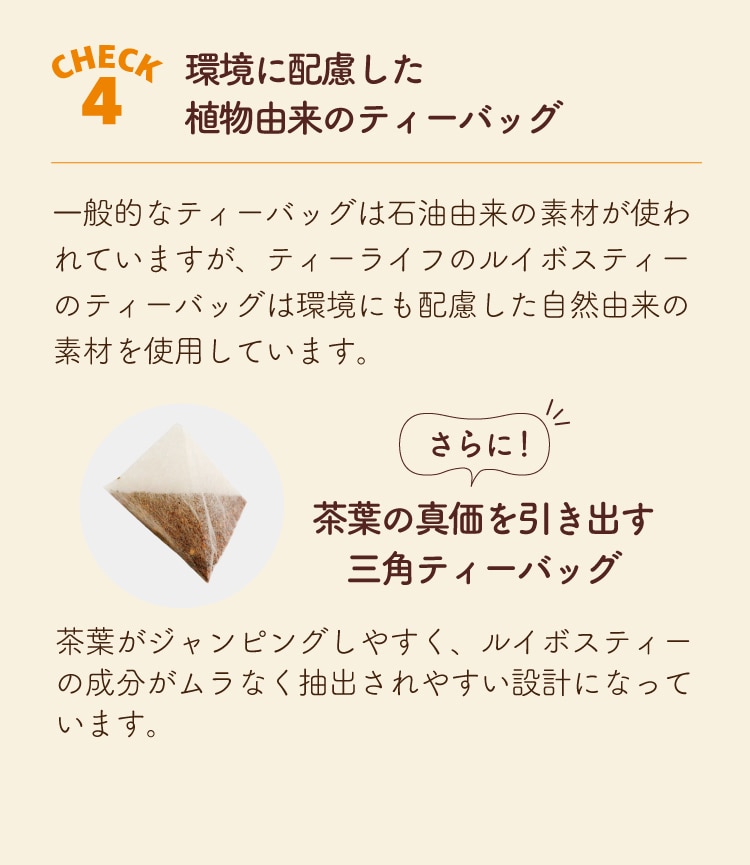 | 原材料(原産国) | ルイボス(南アフリカ共和国) |