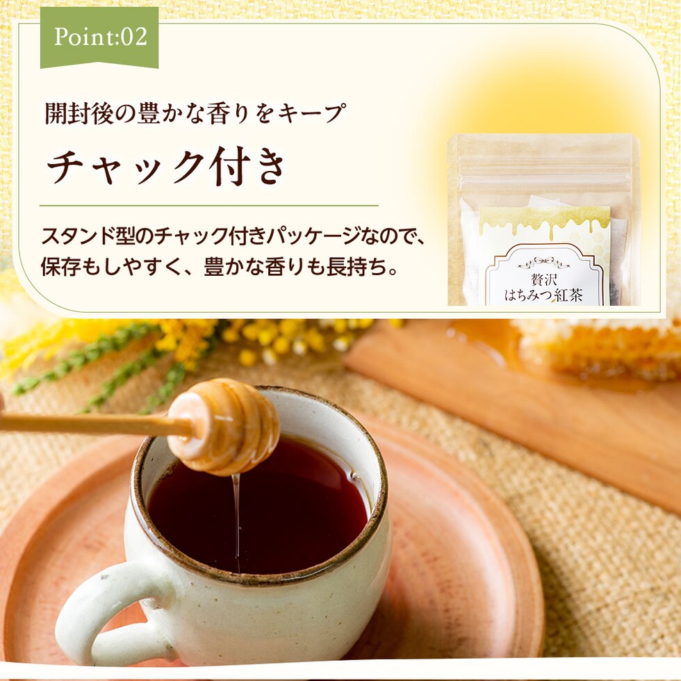 原材料 紅茶(ケニア)、ステビア(インド)、はちみつパウダー(はちみつ(国内製造)、デキストリン)/香料