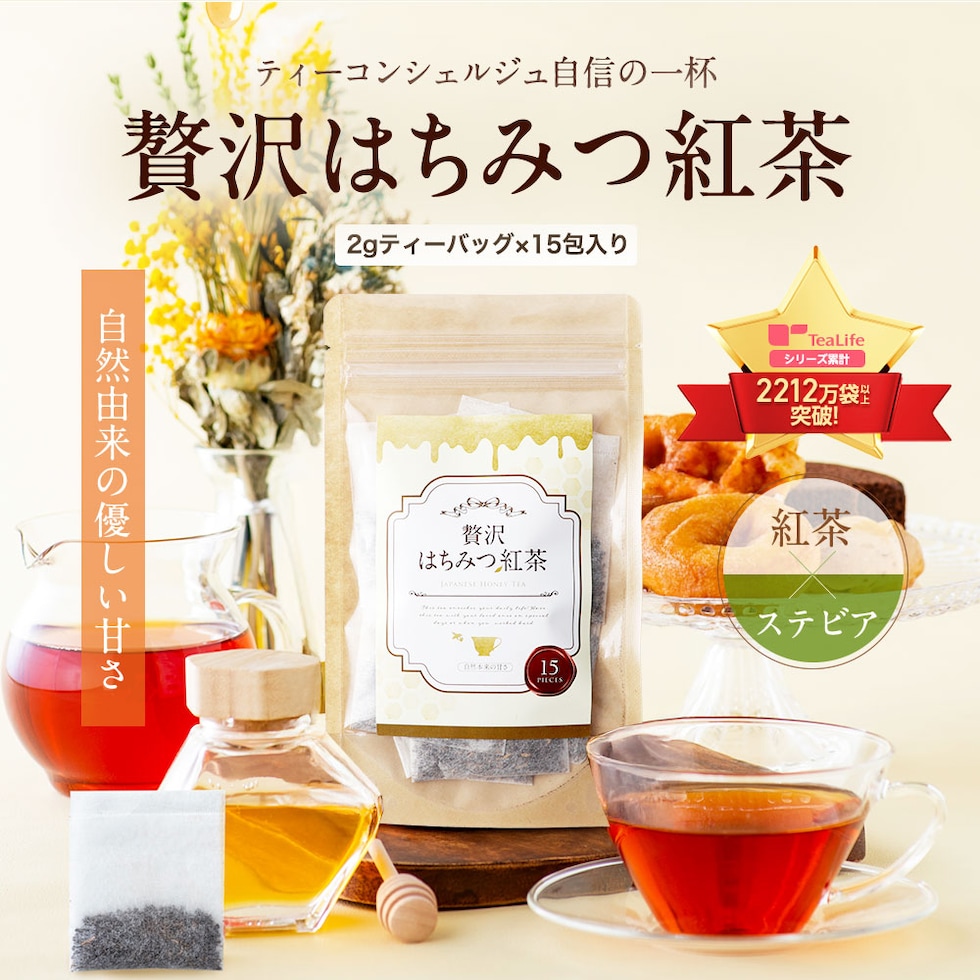 贅沢はちみつ紅茶 カップ用15個入 ( 自然な甘さ 厳選素材 蜂蜜紅茶 ハチミツ紅茶 紅茶 ハニーティー ティータイム 香り 自然の甘み ぜいたく スイーツ お茶 ティーバッグ ティーパック 送料無料 ティーライフ )のレビュー