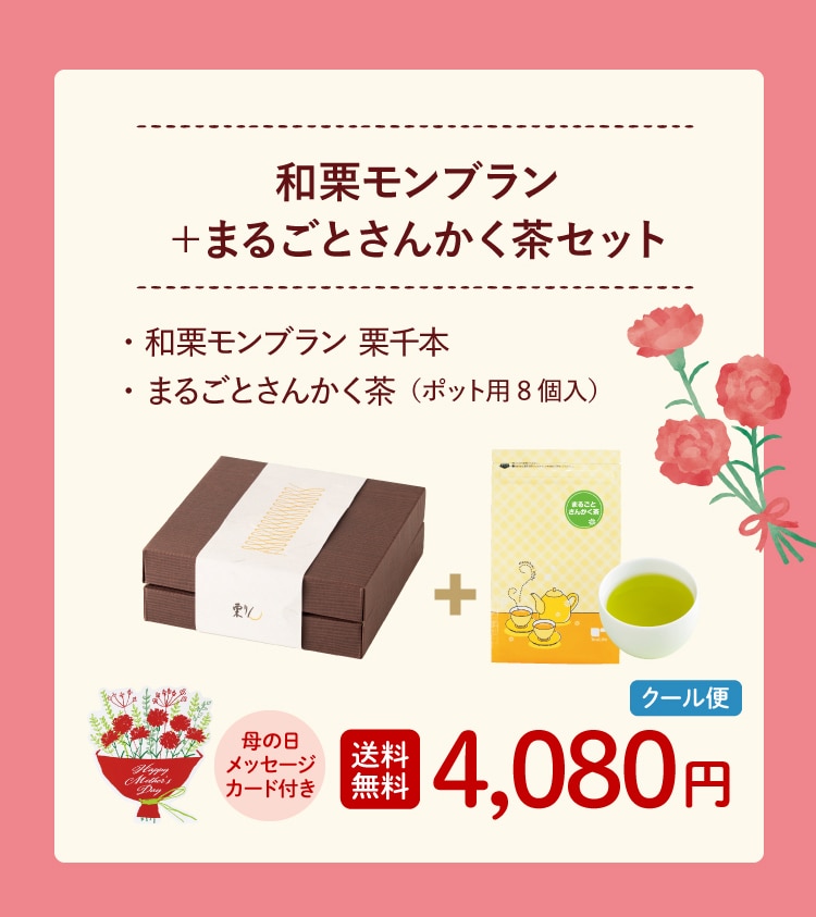 ・和栗モンブラン 栗千本 ・まるごとさんかく茶 8個入 ※母の日メッセージカード付 |