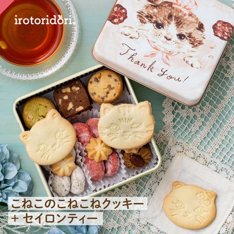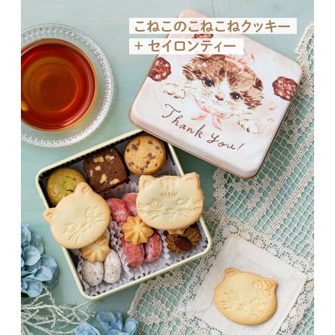 《猫デザインのクッキー缶》こねこのこねこねクッキー + セイロンティーダージリンブレンド ( ギフト かわいい 可愛い ねこ好き 友達 友だち 女性 誕生日 プレゼント 特別セット 化粧箱入り 送料無料 ティーライフ )