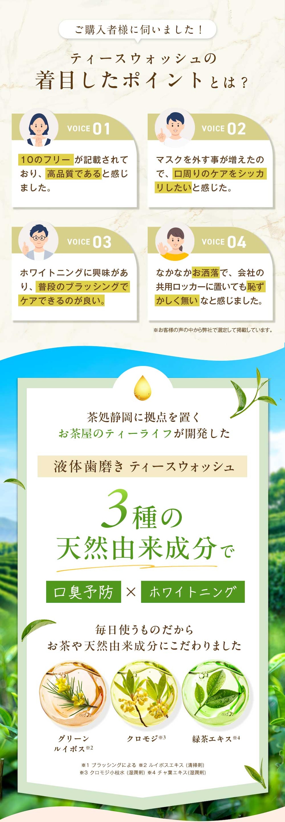▽検索キーワード ティースウォッシュ TEA WASH 液体歯磨き マウスウォッシュ 洗口液 レモンミント風味 デンタルケア ホワイトニング 口臭予防 口臭防止 ドライマウス予防 虫歯予防 歯垢除去 ブラッシング お口の臭い 歯磨き プラーク除去 磨き残しケア タンパク質汚れ 着色汚れ 天然由来成分 グリーンルイボス クロモジ 緑茶エキス お茶 カテキン 汚れが見える ノンアルコール ノンシリコン ノンパラベン 石油系界面活性剤不使用 研磨剤不使用 合成香料不使用 大人 子ども 歯磨き ティーライフ |