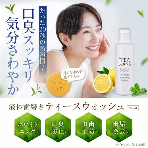 【まとめ買い★4%お得】ティースウォッシュ 250mL ×2本セット ( マウスウォッシュ ノンアルコール レモンミント風味 ホワイトニング 口臭予防 虫歯予防 歯垢除去 歯磨き タンパク質汚れ 天然由来成分 ノンシリコン ノンパラベン TEA WASH ティーライフ )