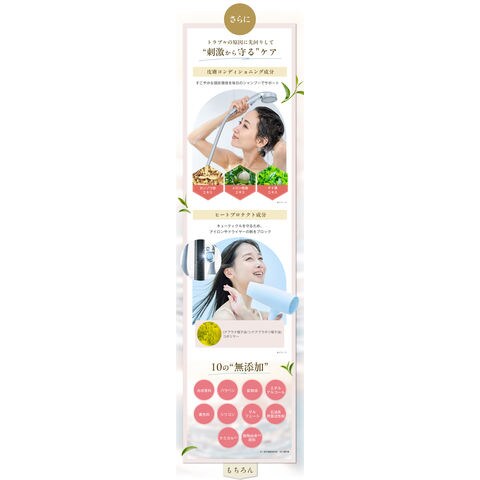 | 全成分 | 水、ラウロイルメチルアラニンNa、ココイルグルタミン酸TEA、ラウラミドDEA、ラウラミドプロピルベタイン、コカミドDEA、ラウロイルヒドロキシエチル-β-アラニンNa、チャ種子油、スクワラン、ホホバ種子油、加水分解シルク、ヒアルロン酸ヒドロキシプロピルトリモニウム、ジヒドロ キシプロピルアルギニンHCl、加水分解エンドウタンパク、加水分解コラーゲン、水溶性コラーゲン、ゼイン、リンゴ果実培養細胞エキス、オタネニンジン根エキス、センブリエキス、シロキクラゲ多糖体、ヒアルロン酸Na、ユズ果実エキス、(アブラナ種子油/シナアブラギリ種子油)コポリマー、メロン胎座エキス、チャ葉エキス、カンゾウ根エキス、グリチルリチン酸2K、サピンヅストリホリアツス果実エキス、ソメイヨシノ葉エキス、ニオイテンジクアオイ油、ラベンダー油、オレンジ果皮油、グリセリン、BG、カプリル酸グリセリル、クエン酸、クエン酸Na、アルギニン、コカミドプロピルベタイン、ラウリルグルコシド、ミリストイルメチルアラニンNa、レシチン、ポリクオタニウム-10、キサンタンガム、ペンチレングリコール、トコフェロール、アスコルビン酸、フィチン酸、ポリソルベート60、塩化Na、 DPG、酸化銀、フェノキシエタノール |