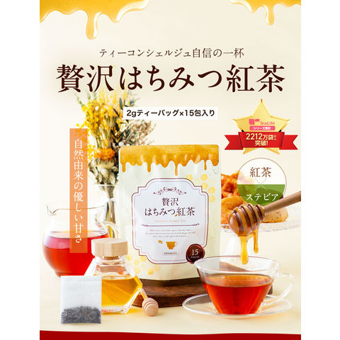 ●内容量:1袋30g(2gティーバッグ×15個) ●原材料:紅茶(ケニア)、ステビア(インド)、はちみつパウダー(はちみつ(国内製造)、デキストリン)/香料 ●賞味期限:製造日より12ヶ月 ●ご確認ください: ・はちみつを使用しておりますので、1歳未満の乳児には与えないでください。 ・1日1~2杯を目安にお召し上がりください。 |