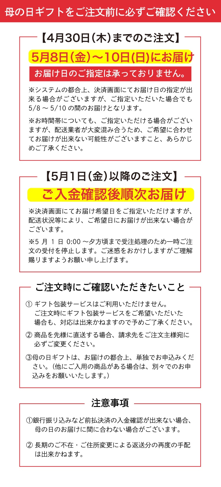 - 「ご注文前に必ずご確認ください」をご確認ください