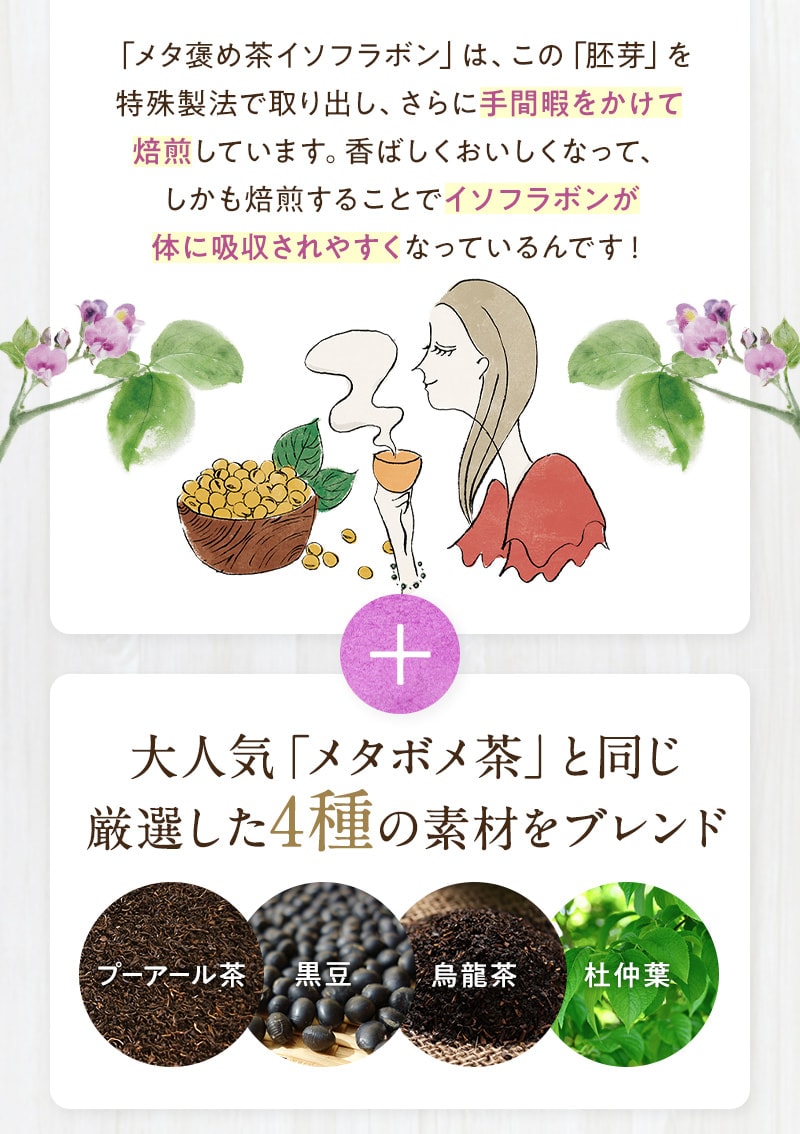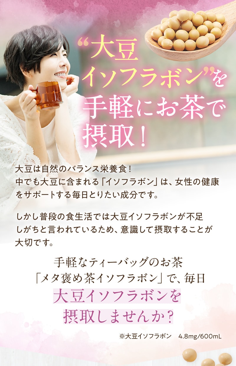 メタ褒め茶 イソフラボン ポット用30個入 ( 大豆イソフラボン 女性 エストロゲン 大豆胚芽 メタボメ茶 黒豆茶 烏龍茶 プーアール茶 杜仲葉 おいしい 健康茶 健康飲料 ティーバッグ ティーパック ティーライフ )
