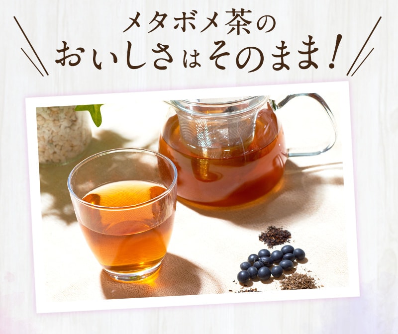| 原材料 | 黒豆[大豆](アメリカ・国産)、プーアール茶・ウーロン茶(中国)、大豆胚芽(アメリカ・カナダ)、杜仲葉(中国) ■アレルギー物質/大豆 |