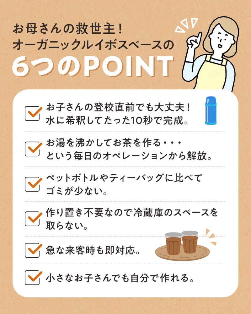 ▽検索キーワード オーガニックルイボスベース 有機ルイボスベース オーガニックルイボスティー 有機ルイボスティー オーガニック 有機 ルイボス茶 ルイボスティー 水出し ルイボスティー ペットボトル ルイボスティー 粉末 希釈タイプ 手軽 薄めるだけ 子ども 水筒 学校 息抜き ひといき デスクワーク リラックス ティータイム 健康飲料 健康茶 美容飲料 美容茶 ノンカフェイン カフェインレス お茶 ポット カップ ホット アイス 水出し 冷茶 水分補給 お取り寄せ 送料無料 ティーライフ ▽用途例 ギフト プチギフト プレゼント 贈り物 贈答品 まだ間に合う 御挨拶 ご挨拶 ごあいさつ 心ばかり 進物 寸志 ありがとう おめでとう 手土産 お土産 お返し お礼 御礼 お祝い 御祝 内祝い 結婚式 結婚内祝い 結婚祝い 引き菓子 引き出物 引出物 出産 出産内祝い 出産祝い 引越しご挨拶 新築内祝い 新築祝い 新生活 入学祝い 卒業祝い 就職祝い 快気祝い 快気内祝い 全快祝い 退院祝い 七五三内祝い 初節句内祝い お宮参り 志 御供 御見舞 御見舞御礼 御仏前 香典返し 成人式 七五三 引っ越し 引越し お年賀 御年賀 御年始 お正月 御正月 新年 新年会 暑中見舞い 暑中御見舞 初盆 お盆 お中元 御中元 寒中見舞い 寒中御見舞い お歳暮 御歳暮 忘年会 春ギフト 夏ギフト 秋ギフト 冬ギフト 誕生日 誕生日プレゼント 誕プレ バースデー バレンタイン ホワイトデー ゴールデンウィーク 七夕 ハロウィン クリスマス クリスマスプレゼント 父の日 母の日 父 母 お父さん お母さん 敬老の日 祖父 祖母 おじいちゃん おばあちゃん 還暦 還暦祝い 華甲 古希 喜寿 傘寿 米寿 卒寿 白寿 茶寿 男性 旦那 夫 彼氏 男友達 男友だち 伯父 叔父 女性 嫁 妻 彼女 女友達 女友だち 伯母 叔母 兄弟 姉妹 家族 親戚 夫婦 金婚式 銀婚式 お餞別 帰省 帰省土産 PTA 先生 小学校 中学校 高校 大学 社会人 先輩 後輩 上司 上長 来客 送迎 職場 取引先 成約記念 契約記念 新歓 歓迎会 定年退職 退職 転職 転勤 異動 謝罪 二次会 イベント ノベルティ ビンゴ 景品 記念品 フォーマル 迷ったらコレ |