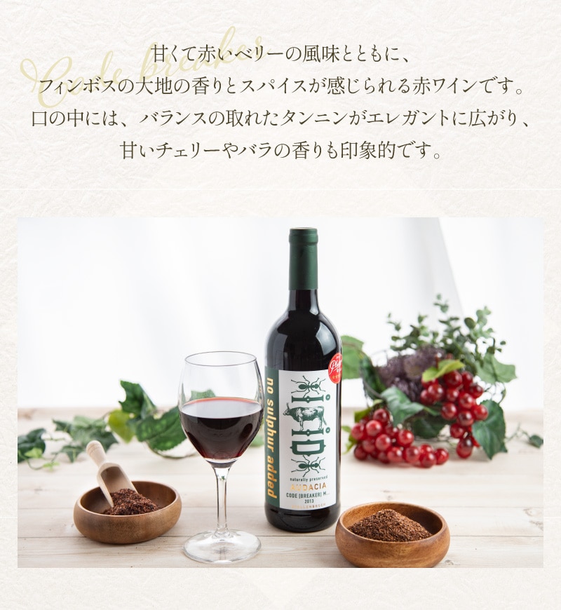 《亜硫酸塩不使用》ルイボスワイン コードブレイカー <赤ワイン・オリジナルブレンド>( ナチュールワイン オーガニックワイン 南アフリカ産 ルイボスティー ルイボス ワイン ボトル ギフト 被らない おしゃれ イベントの試飲で大好評 ティーライフ )