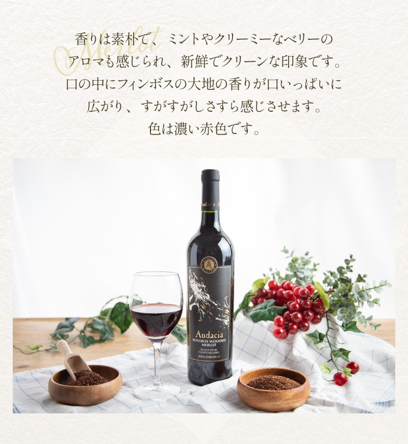 《亜硫酸塩不使用》メルロー <赤ワイン>( ナチュールワイン オーガニックワイン 南アフリカ産 ルイボスティー ルイボス ワイン ボトル ギフト 被らない おしゃれ イベントの試飲で大好評 ティーライフ )