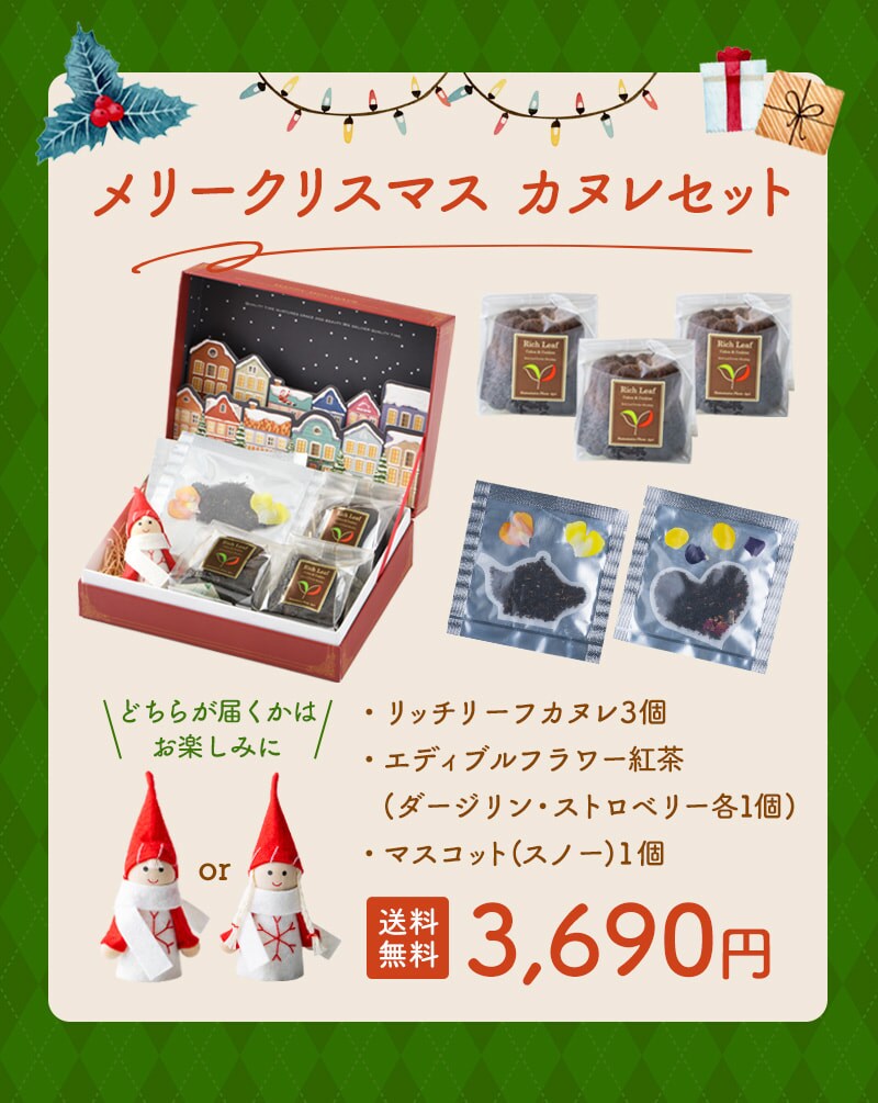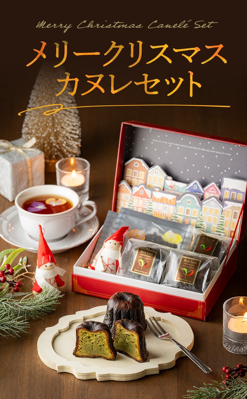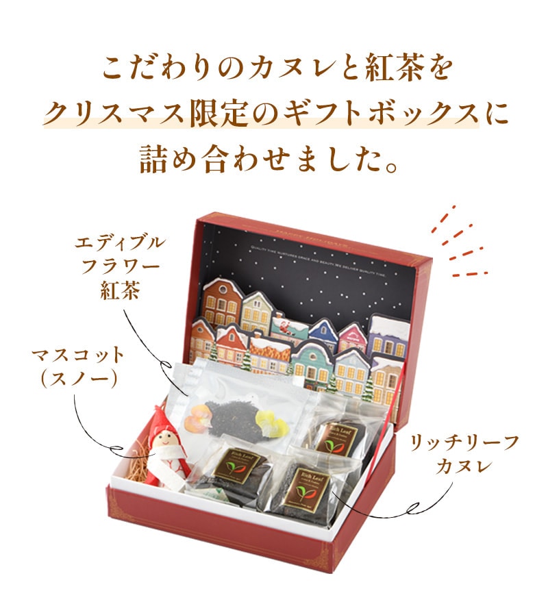 《X'mas限定ボックス》メリークリスマス カヌレギフトセット ( 紅茶 カヌレ クリスマスエディション クリスマス プレゼント ギフト 女性 友だち 特別ギフト おしゃれ 可愛い リッチ サンタクロース お菓子 焼き菓子 エディブルフラワー ティーライフ )