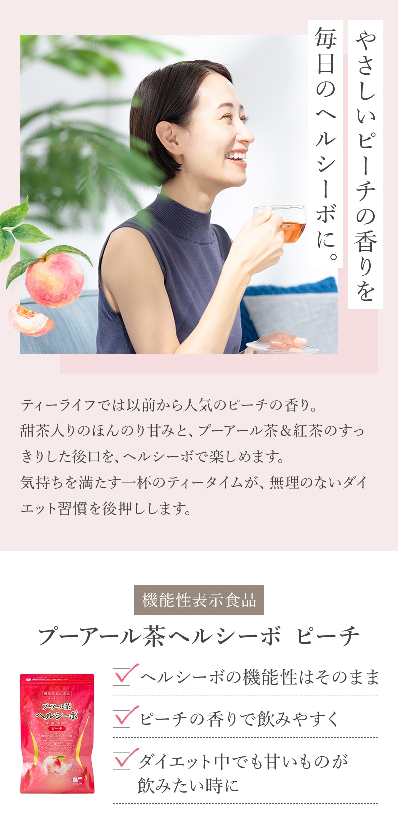 【まとめ買い★15%お得】機能性表示食品 プーアール茶 ヘルシーボ ピーチ 30個入 ×3袋セット ( エラグ酸 肥満気味の方 体重 ウエスト 体脂肪 血中中性脂肪 BMI 内臓脂肪 サポート スッキリ プーアール茶 サポート ダイエット お茶 ティーバッグ ティーパック ティーライフ )