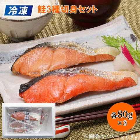●商品内容/紅鮭切身・オホーツク海沖獲鮭切身・秋鮭切身 各80g×3