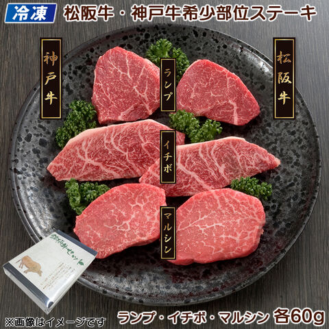 松阪牛と神戸牛の赤身肉の希少部位(ランプ・イチボ・マルシン)をステーキ用にカットしました。【商品提供者コメント】