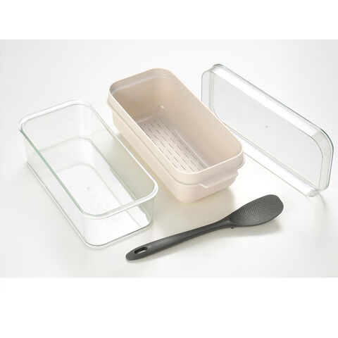 ●商品内容/サイズ(約)=幅29.6×奥行13.2×高さ10.5cm 容量(約)=2.1L(適正容量200ml) 重さ(約)=560g 素材=外容器・フタ/飽和ポリエステル樹脂 内容器・しゃもじ/ポリプロピレン 日本製 ※ぬかどこは付属していません。