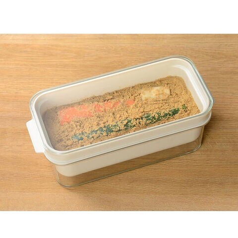 初心者でも簡単!野菜の水分をほどよく外容器に自然排出。水抜きスリット付きぬか漬け容器【商品提供者コメント】