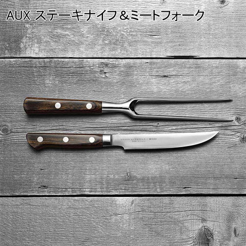 ●商品内容/サイズ(約)=ステーキナイフ /全長24(刃渡り12)cm ミートフォーク /全長25.7cm 重さ(約)=ステーキナイフ/72g ミートフォーク/95g 素材=ステーキナイフ/コバルト合金鋼(三層構造) ハンドル:合板(強化木) フォーク/ステンレス鋼 ハンドル:合板(強化木) 日本製