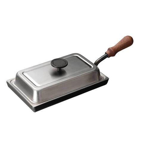 ●商品内容/サイズ(約)=幅25(取っ手含む幅43)×奥行16×深さ2(フタ含む高さ9.5)cm 重さ(約)=2.4kg(フタ含む) 素材=鋳鉄(シリコーン樹脂塗装) ハンドル/天然木 フタ/ステンレス鋼 ツマミ:アルミニウム合金(ふっ素樹脂塗膜加工) 日本製