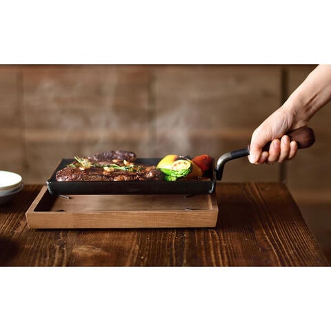 調理してそのまま食卓へ。手軽に使える片手ハンドルの厚さ4.5mmの枠付き鉄板。【商品提供者コメント】