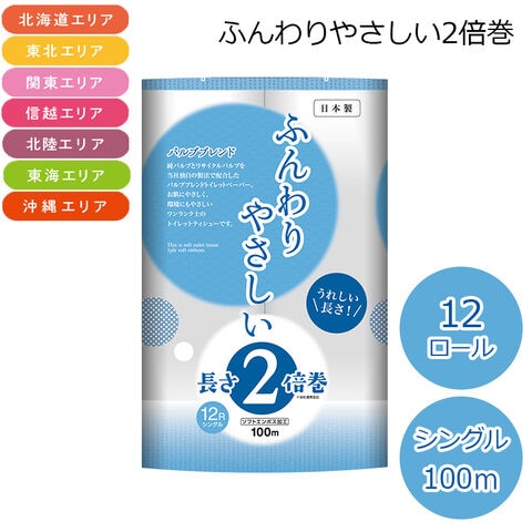 (北海道・東北・関東・信越・北陸・東海・沖縄エリア限定) ふんわりやさしい2倍巻 シングル 100M トイレットペーパー 送料込み