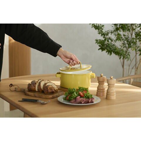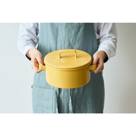 ●商品内容/色=イエロー サイズ(約)=内径20(取っ手含む幅25) 容量(約)=2.9L 重さ(約)=850g 蓋/370g 素材=ほうろう用鋼板(ほうろう加工) タイ製