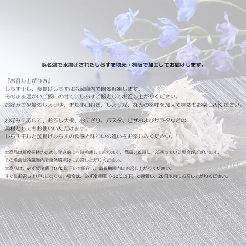 しらす干しと釜揚げの詰合せで食感と味わいの違いをお楽しみください。ほんのり塩味はおにぎり、パスタの具材にもお使い頂けます【商品提供者コメント】